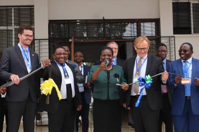 Waziri wa Elimu, Sayansi na Teknolojia Profesa. Joyce Ndalichako akikata utepe kuashiria uzinduzi wa wa Kituo cha Umahiri cha Teknolojia ya Habari na Mawasiliano uliofanyika katika Taasisi ya Sayansi na Teknolojia ya Nelson Mandela jijini Arusha.